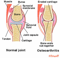 Osteoarthritis (OA) is a degenerative joint disease that affects the WHOLE JOINT. Many people believe OA just affects the cartilage (layer that cushions and lines the joints). Although the main structure that’s often affected is cartilage, OA also affects the connective tissue, ligaments, and synovium surrounding the joint. Cartilage is a type of connective tissue that lines our joints and not only helps with shock/load absorption but also our ability of a joints to glide smoothly. Our articulate cartilage stores a fluid called synovial fluids his lubricates our joints and helps provide nutrients to our joints. When we move our joints, the synovial fluid is released to help lubricate. Much like a sponge – it’s full of water and when we squeeze it water releases. Similarly, if we don’t move our joints, fluid is not released and therefore lubrication and smooth/free joint play may not achieved.